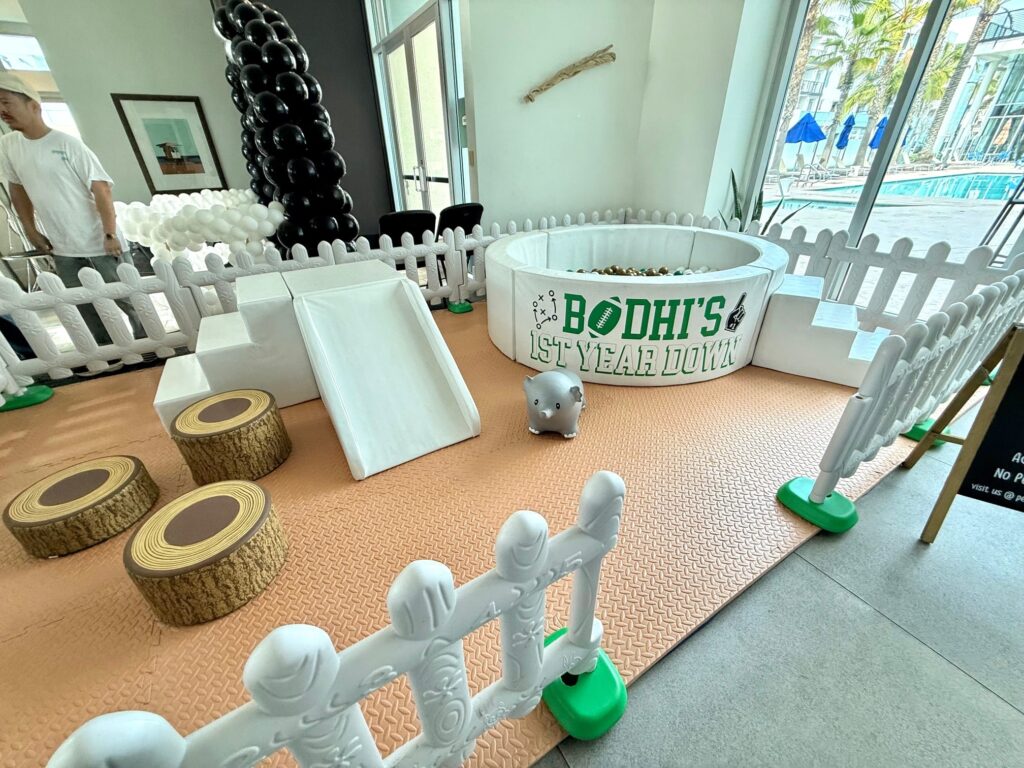 Even though it was a winter weekend, Huntington Beach’s sunny weather added to the vibrant energy of the day. The combination of a great theme, custom details, and our signature soft play setup made Bodhi’s first birthday a touchdown-worthy celebration!